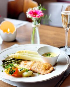 Ob zarte Spargelgerichte oder ein feiner Coup Romanoff – bei uns erleben Sie genussvolle Frühlingsmomente in stilvoller Atmosphäre.